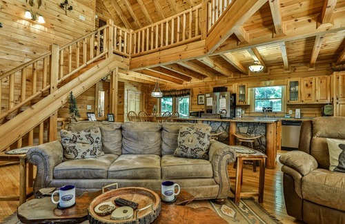 - Spacious Accommodations: The cabin features three bedrooms and three baths, comfortably sleeping up to 10 guests, making it suitable for both intimate gatherings and larger family groups.
