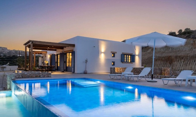 Welcome to Majestic Private Pool Villa, a newly constructed sanctuary completed in June 2024. Nestled on the stunning Kefalos Hill, this villa offers an unparalleled, infinite sea view that stretches as far as the eye can see, providing a perfect backdrop for your serene getaway.