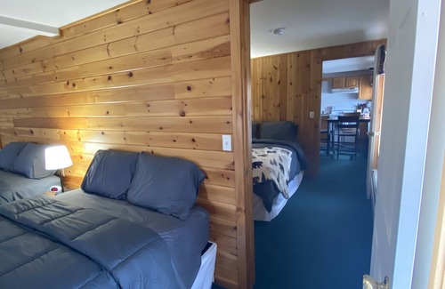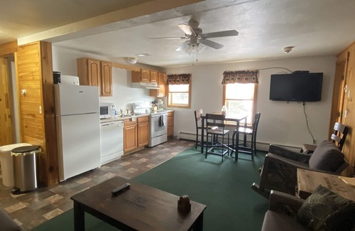 We are a rustic lodge with modern amenities and a high level of customer service sitting on Long Lake in Sinclair Maine. We have large comfortable and clean rental suites with full kitchens, living rooms, shower/tub, Cable TV/High speed WIFI, w/ 4 queen beds per suite. Max occupancy for each suite is 6.