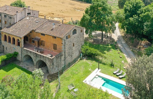 Welcome to Can Blanc de Montagut Dalt!Can Blanc Dalt is one of the four spacious apartments in a restored Catalan farmhouse. Each apartment is designed for comfort and convenience, perfect for active families and groups looking to explore the Garrotxa National Park. With a capacity for five guests, two bedrooms, and a shared garden and pool, Can Blanc Dalt offers a rustic holiday experience in the heart of Garrotxa.The apartment is equipped with modern and comfortable furniture while preserving the charm of the original building. The spacious living and dining room is perfect for relaxing after a long day of hiking in Garrotxa, and the wood stove in the middle of the room adds warmth and atmosphere during the winter months. The large window provides stunning views of the fields and mountains around, and the dining area is equipped with a large table for serving meals and playing games.The kitchen is fully equipped with everything you need, including a dishwasher, refrigerator, freezer, stove, oven, dishes, pots and pans, cutlery, and utensils. The apartment also features a large modern bathroom with an open shower, toilet, sink, and a changing table for babies.The apartment has two large bedrooms that can accommodate up to five guests. All rooms have ample closet space, and the beds are extra-large and comfortable. Bedroom 1 has an extra-large double bed and a crib, while bedroom 2 has an extra-large double bed and a single bed.With all the attractions of Garrotxa within a 30-minute drive, enjoyable hiking trails starting from the house, and comfortable beds, Can Blanc Dalt is the perfect holiday accommodation for families and groups seeking an active and enjoyable vacation.Can Blanc de Montagut Dalt is one of the four holiday lodgings in a large country house. The accommodation has its own entrance and is not shared with other guests.Free public parking is available near the entrance.The garden, pool, and barbecue area are shared with other guests.*** ABOUT THE AREA ***Can Blanc de Montagut is located in the neighborhood 'Els Angles.' This is a tranquil valley with fields, a few houses, and a farm at the foot of the well-known village 'Castellfollit de la Roca.' The valley is shaped by the Fluvià River flowing through it. From the house, there are several short and long hiking trails along the Fluvia, over the mountains, and to Castellfollit de la Roca, which is just a 40-minute walk from Can Blanc de Montagut.**** Adherent Pig Farm ****The house is located near a pig farm. From time to time, you can hear the animals, especially during feeding hours when they get excited. There are no bad odors. The neighboring farm, Can Blanc, owned by the Batallé group, is a breeding farm—no animals are slaughtered there. It has been recognized as the best pig farm in the Garrotxa region for its responsible management in biosecurity and animal welfare. The farm is committed to high-quality standards and respectful treatment of the animals, and it continuously works to establish new benchmarks in the industry.3 walks around the house:- Along the Fluvia (30 minutes) - A short walk along the river through the forest. Here, you can spot many water birds and fish.- Walk to Castellfollit de la roca (40 minutes) - Impressive mountain village built on the edge of a 50-meter-high basalt cliff.- Baumes de Caxurma Loop (2:30 hours) - Walk with views of the Pyrenees, along caves, and past Castellfollit de la Roca.The region: La GarrotxaCan Blanc de Montagut is situated on the edge of the 'Parque Natural de la Zona Volcánica de la Garrotxa.' The Garrotxa volcanic zone is a unique natural area consisting of 40 volcanic craters. The area is known for its beautiful hiking and cycling routes, ancient villages, and delicious cuisine. Due to its good accessibility, Can Blanc is an ideal base to explore the area.Highlights within a 30-minute drive:- Castellfollit de la roca (7 minutes drive or 40 minutes walk) - Impressive mountain village built on the edge of a 50-meter-high basalt cliff.- Pont de Llierca (11 minutes drive) - Medieval footbridge over the Llierca River where you can swim.- Besalú (11 minutes drive) - Medieval town known for its stone bridge.- Sadernes (15 minutes drive) - The starting point for our favorite hike to St. Aniol d'Aguja. A breathtaking walk along crystal-clear rivers and swimming spots.- Olot (16 minutes drive) - The central city in La Garrotxa where many activities are organized, and you can enjoy delicious food.- Fageda d’en Jorda (20 minutes drive) - Unique beech forest on the edge of the Croscat volcano.- Croscat volcano (23 minutes drive)- Santa Margarida volcano (25 minutes drive)- Santa Pau (26 minutes drive) - Medieval village from where you can take beautiful walks.ABOUT ‘ELS MAJORDOMS’, YOUR HOSTEls Majordoms is a professional holiday accommodation management company located in Banyoles. We manage around 25 holiday accommodations in the province of Girona. Our team has over 9 years of experience in creating unforgettable experiences for our guests.- High-quality accommodations: We manage only well-maintained holiday accommodations with all the necessary facilities for a wonderful stay.- Super clean: We prepare and clean each accommodation to the highest standard. Cleaning and linen are included in the price.- Excellent communication: Our guests appreciate our communication before, during, and after their stay. We offer an easy booking process, a comprehensive house guide, and are available if you need help.- Thanks to our high-quality standards, we are a popular choice among international sports teams, companies, and retreats.- We speak English, Spanish, Catalan, French, Dutch, and Arabic.BOOKING INFORMATION- Security Deposit: On the day of arrival, we will hold a security deposit on the provided credit card. This deposit will be fully released after your stay, provided no damages or violations of the agreed terms are detected.- Tourist Taxes: In accordance with Catalan