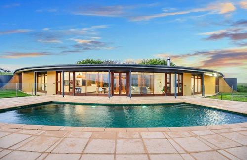 Designed by Max Pritchard Architects, "Makai Luxury Lodge" is a premier getaway nestled in the highly sought-after holiday destination of Middleton, South Australia. Set on 80 acres of undulating farmland, this exquisite property offers breathtaking coastal, Murray River, and rural vistas that stretch as far as the eye can see.