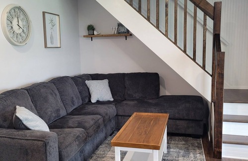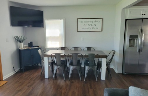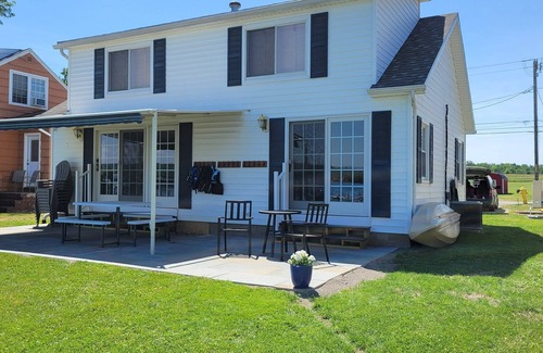 Come enjoy our home away from home! Beautifully renovated and fully updated cottage directly on the waterfront. It's the perfect spot on the north end of the lake. Cottage sleeps eight people in four bedrooms. Three bedrooms have queen beds and one bedroom has bunk beds. (One queen room and bunk room downstairs, two queen rooms upstairs). Gorgeous new bathroom is also downstairs. Brand new laundry area with full laundry amenities. Updated kitchen with all new appliances and fully stocked with dishes, pots, pans, silverware and small kitchen gadgets. Cozy living and dining room with stunning view of the lake. Board games and puzzles available to play with family and friends. Large flat yard with partially covered patio. Canoe available for your use and bring your fishing poles to fish off our dock. Bring your boat too! Docks are installed mid May and removed mid October. Driveway can accommodate up to four vehicles.