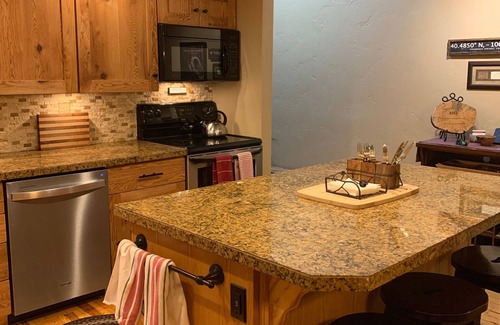 - Modern Amenities: Enjoy a fully equipped kitchen with granite countertops, new appliances, and a full-size washer/dryer. The cozy decor, featuring leather furniture and luxury linens, creates a warm atmosphere perfect for relaxation after wedding festivities.