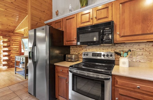 The kitchen is fully equipped with everything you need for your vacation feasts, electric glass cooktop oven, microwave, refrigerator/freezer, dishwasher, electric griddle, toaster, Keurig coffee maker, and blender. Large pennisula provides ample prep space.