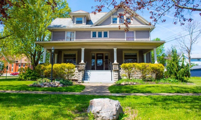 The Malabar Chalet is a tastefully updated historic 2 bedroom home with turn of the century wood craftsmanship, leaded glass and one of a kind accents. There is an updated bathroom and large fully furnished Kitchen. Each bedroom has its own television and there are large bay windows with views of the parks and downtown Loudonville. The massive front porch is equipped with seating and tables and is ideal for enjoying the outdoors in the day or evening. The attached driveway also provides private onsite parking.