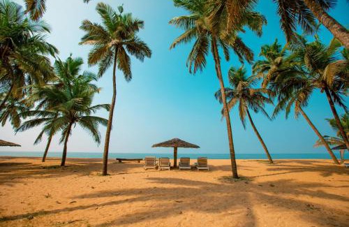 Set in the lovely climes of Nileswar, Malabar Ocean Front Resort And Spa, Bekal features a 24-hour front desk, an outdoor swimming pool and Wi-Fi throughout the property. The property is located 6.2 mi from Kanhangad Railway Station, 5 mi from Nileswar Bus Stand, 3.1 mi from Bekal Fort and 3.1 mi from Tejaswini Back Waters. Guests can pamper themselves in the in-house spa and massage center or relax in the steam and sauna room. A tour desk can help assist them with further travel. Luggage storage, car rental, currency exchange and laundry facilities are also available. Featuring a private balcony with sea views, air-conditioned rooms are equipped with a work desk, electronic safe, flat-screen TV with cable channels, electric kettle and a mini-bar. The private bathrooms contain complimentary bath amenities. Sense restaurant serves Indian and International fare. Room service options are available.