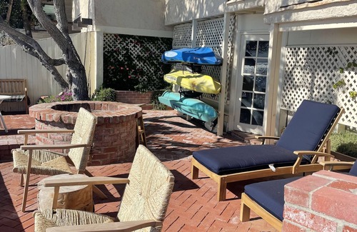 You will find several outdoor common spaces that invite you to enjoy the property, multi-level outdoor porches with garden, a Jacuzzi, an outdoor fireplace and plenty of activities for the outdoor adventurer to use, including 5 sea kayaks - fishing right off the back deck (but you have to get your bait from Wylie's Bait Shack)! Easy beach access, stairs from the house into the water -with a public staircase just one house over. Oh, and the house sits center to the famous Colony surf point break.