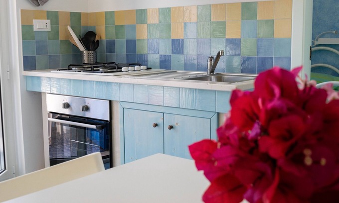 Reach the sea on foot in 5 minutes: discover the beauty of staying in enchanted places, among the olive trees and centuries-old carob trees 300 meters from the sea. Apartments very ventilated and naturally cool because they are well insulated. The structure is in a simple Mediterranean style with internal parking, veranda with pergola and back garden. There is an outdoor shower, a barbecue and outdoor tables and chairs, as well as all the internal supplies (pots, plates, glasses, bowls, coffee mocha etc etc)