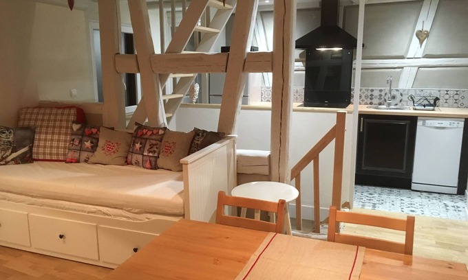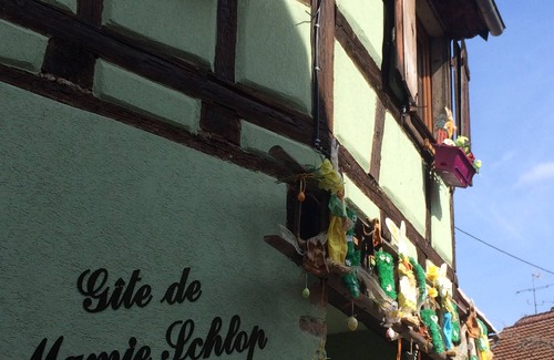 The gite of "Mami Schlop '" is a half-timbered Alsatian village house, completely renovated, located within the walls of the ramparts.