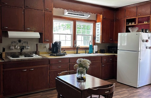 After you afternoon excursions you can relax by the stocked firepit or curl up in the hammock. The house is secluded on a large farm, but 10 minutes from the nearest interstate exchange. The house has 3 huge bedrooms- 1 room with a 2 full size beds. Another room has one full size bed with a sliding mattress under it and a queen size bed. The last room has a full size bed and a twin bed. A total of 7 beds. All beds are upstairs with a set of stairs to each separate bedroom. It has a large kitchen and a dining room downstairs. New furniture in the living room with plenty of seating. The bathroom has a tub/shower combination and has towels for 8 guests daily. It is located on a farm with a long driveway for parking. Super fast WiFi is now available! We are currently adding a game room. Still under construction but there is a pooltabke and an air hockey table there.Not really handicap accessible as all beds are upstairs. The house also has a washer and dryer, blender, microwave, can opener, and Keurig. Ask me for anything in particular if you need it.