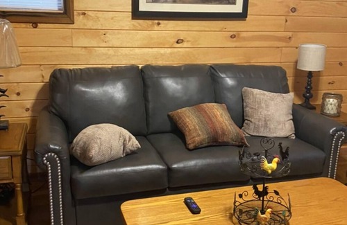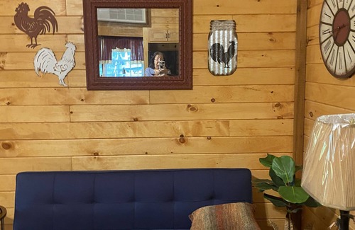 Enjoy this unique experience, Cabin is accessible by side x side only. If you dont have your own, we will provide a side x side to travel back and forth to vehicle only. If you would like to venture out farther on property, there is a charge! See host for details. Your vehicle is parked safely at our home. Enjoy Spectacular views and sunsets, in a fully furnished one bedroom with sofa bed, decorated in Rooster decor, porch with swing. If you are looking for peaceful quiet get a way, this is it!