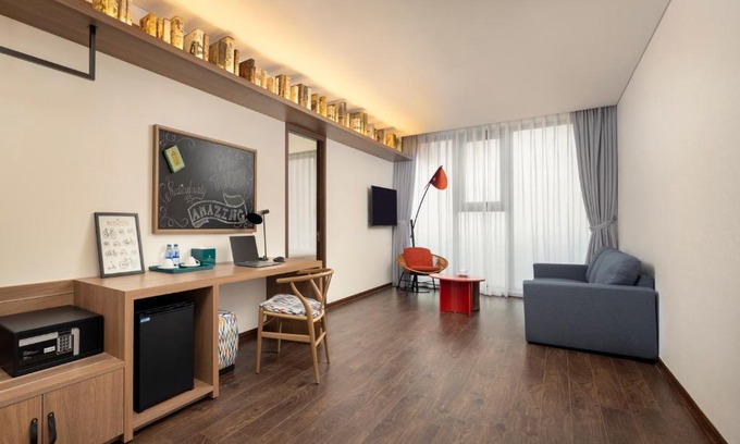 Located 30 miles from Aeon Mall Long Bien, Mandala Hotel & Suites Bac Giang offers 5-star accommodations in Bắc Giang and has a fitness center, a restaurant and a bar. The hotel has an indoor pool and a 24-hour front desk and free WiFi. The hotel will provide guests with air-conditioned rooms with a desk, an electric tea pot, a fridge, a minibar, a safety deposit box, a flat-screen TV and a private bathroom with a bidet. Some rooms also feature a kitchen with a microwave. All rooms feature a closet. Guests at Mandala Hotel & Suites Bac Giang can enjoy a continental breakfast. Thanh Chuong Palace is 31 miles from the accommodation. Noi Bai International Airport is 32 miles from the property, and the property offers a paid airport shuttle service.