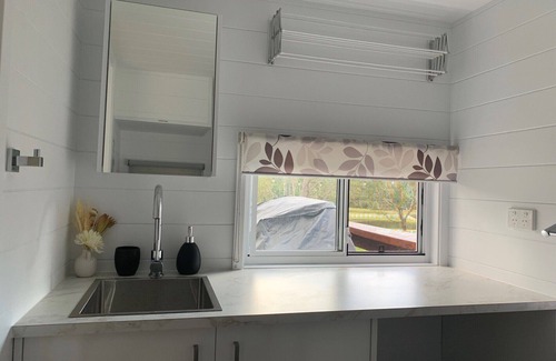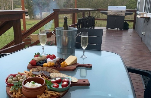 Outdoor Bliss: Start your day with coffee on the deck, where you can watch the wallabies and a plethora of native birds. Cook over the firepit, dine at the breakfast bar overlooking the property, or enjoy a BBQ with lush landscape views. Some firewood and marshmallows are provided. As night falls, the festoon lights create a magical ambiance or turn them off for spectacular stargazing. Pick your own fresh herbs, lemons, and limes from the garden.