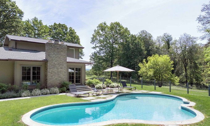 Manderley House is a cozy 3 bed, 2.5 bath retreat just 2.5 hours from NYC. This home features a heated pool and deck with sun loungers plus a 2nd deck with a BBQ grill and outdoor firepit. Stylishly designed with stone accents and large windows, the property also offers an EV charger, laptop friendly workspaces, a fireplace and a firepit.