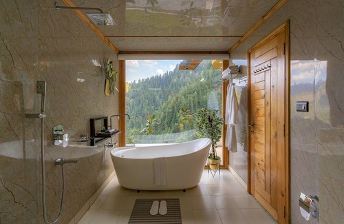Mandukya is a luxury retreat in Tandi village, nestled in the majestic mountains 8km uphill from Jibhi . Our secluded cottages offer breathtaking views, high-end furnishings, and insulated walls for temperature control. Enjoy bath tubs facing the mountains and sauna baths for deep relaxation. In-house chef and automated food ordering system available for authentic Indian and international cuisine. Experience the ultimate mountain get away at Mandukya where luxury and nature meet.