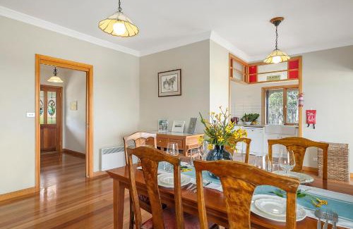Featuring a garden, Manfield Country Bruny Island features accommodations in Alonnah. With garden views, this accommodation offers a patio. There's an outdoor fireplace and guests can use free Wifi and free private parking. Leading onto a balcony with mountain views, the spacious air-conditioned vacation home consists of 3 bedrooms. Offering a terrace with sea views, this vacation home also has a flat-screen TV, a well-equipped kitchen with a dishwasher, an oven, and a microwave, as well as 2 bathrooms with a bath and a hair dryer. There's also a seating area and a fireplace. Guests can make the most of the warm weather with the property's barbecue facilities. Hobart Airport is 58 miles away.