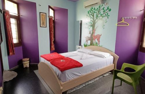 Offering city views, Mango Tree Homestay in Hampi provides accommodations, a garden, and a shared lounge. This homestay offers free private parking, a 24-hour front desk, and free Wifi. The accommodation features luggage storage space, room service, and currency exchange for guests. The homestay will provide guests with air-conditioned units with a desk, a safety deposit box, a flat-screen TV, a terrace, and a private bathroom with a walk-in shower. Rooms come with a dressing room with a mirror and storage space. At the homestay, units come with bed linen and towels. A baby safety gate is also available for guests at the homestay.