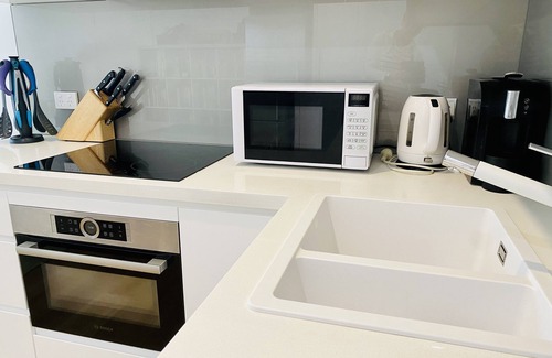 ✅ Fully-equipped kitchen with dishwasher, full fridge/freezer, oven, induction cooktop, microwave, pod coffee machine & more