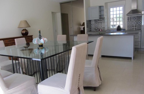 Offering free WiFi and garden views, Manoir de Pléac entier (2 Gîtes) is an accommodation set in Combourg. This holiday home has a private pool, a garden and free private parking. The holiday home is fitted with 7 bedrooms, 5 bathrooms, bed linen, towels, a flat-screen TV, a dining area, a fully equipped kitchen, and a terrace with pool views. The holiday home also features a seating area as well as 5 bathrooms with a shower, a bath and a hairdryer. Dinan Train Station is 28 km from the holiday home, while Mont Saint Michel Abbey is 38 km from the property. The nearest airport is Rennes–Saint-Jacques Airport, 47 km from Manoir de Pléac entier (2 Gîtes).