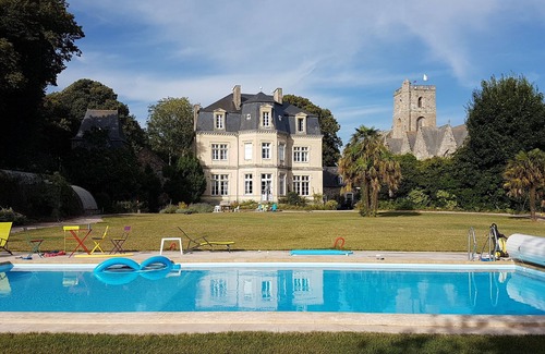 Manor/Large family home, 7 bedrooms, 6 double beds, 5 single beds is located in Lamballe. Manor/Large family home, 7 bedrooms, 6 double beds, 5 single beds provides accommodation, featuring Pool, Bedding/Linens, Fireplace/Heating, among other amenities. This House features Pool, Bedding/Linens, Fireplace/Heating, to make your stay a comfortable one.