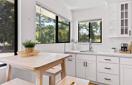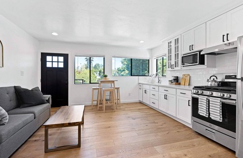 Welcome to our freshly reimagined 1-bedroom, 1-bath haven, crafted to comfortably host up to 4 guests! This stylish, modern escape features a fully equipped kitchen and a spacious living area—ideal for unwinding or catching up with loved ones. Need room for a bigger crew? Combine this unit with any of the 5 other unique rentals on-site, including a neighboring 3-bedroom house, to accommodate up to 24 guests for retreats, reunions, or special events. Bonus: eco-conscious travelers will love the on-site EV chargers. Your perfect stay begins here!