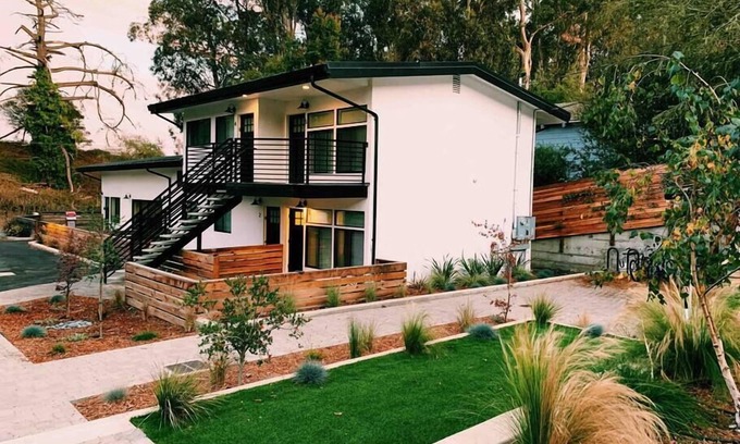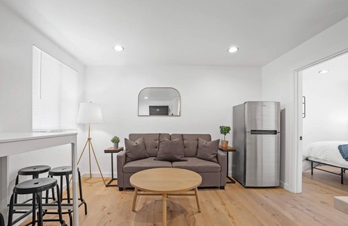Welcome to our freshly reimagined 1-bedroom, 1-bath haven, crafted to host up to 4 guests! This stylish, modern, street-level unit features a fully equipped kitchen and a spacious living area—ideal for unwinding or catching up with loved ones. Need room for a bigger crew? Combine this unit with any of the 5 other unique rentals on-site, including a neighboring 3-bedroom house, to accommodate up to 24 guests for retreats, reunions, or special events. Bonus: eco-conscious travelers will love the on-site EV chargers. Your perfect stay begins here!