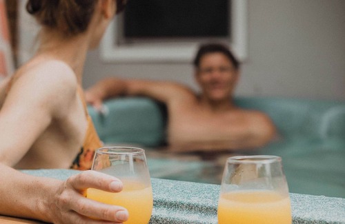 Welcome to our freshly reimagined studio haven, a street-level retreat designed to comfortably host up to 2 guests! This chic, modern space features a well-appointed kitchenette and a cozy living area—perfect for relaxing after a day of adventure. Traveling with a larger group? Pair this unit with any of the 5 other unique rentals on-site, including a nearby 3-bedroom house, to accommodate up to 24 guests for retreats, reunions, or special celebrations. Bonus: eco-friendly explorers will appreciate the on-site EV chargers. Your ideal getaway starts here! Discover Platforms, the property’s standout communal outdoor retreat, where stunning landscaping creates the perfect backdrop for relaxation and fun. This inviting space welcomes you with open-air showers, a luxurious hot tub, glowing fire pits, and playful amenities like corn hole and hammocks. Unwind under shaded umbrellas or sink into comfy chairs, soaking in the tranquil charm of this unique oasis.