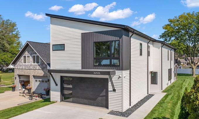 This brand-new waterfront retreat offers the perfect blend of modern luxury and relaxation, making it an ideal choice for both leisure and professional stays. Nestled on a scenic riverfront, just minutes from Anchor Bay and Lake St. Clair, this home is perfect for boating enthusiasts—bring your boat and take advantage of the private dock! Designed to accommodate up to 10 guests, the home features spacious interiors and stunning water views. The primary bedroom includes a private upper deck, offering a peaceful space to enjoy the scenery, while the lower patio is perfect for outdoor living, featuring a hot tub, firepit, grill, and ample seating. The secondary bedrooms each have ensuite bathrooms, and the primary bathroom boasts a luxurious double shower. For added convenience, the laundry room is located upstairs near the bedrooms. Inside, the home includes a pool table and a dedicated workspace, making it great for remote work or professional retreats. The spacious backyard and waterfront location offer the perfect setting to relax and enjoy the surroundings. Whether you're docking your boat, relaxing in the hot tub, or hosting a work retreat, this property provides the ideal balance of comfort, productivity, and leisure.
