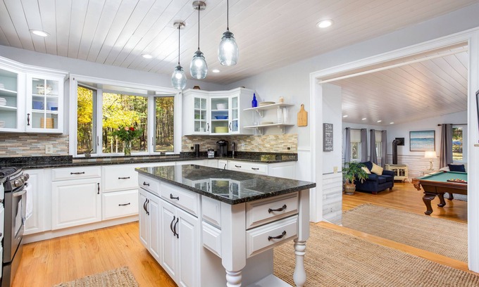 1929 manor style home with all the updates you would expect in 2022. This beautiful getaway sits atop 5 beautiful acres of forest, flower gardens, and fruit trees. 7 tastefully decorated bedrooms, 4.5 bathrooms, 2 living rooms, dining room with french doors that lead out to a large deck with amazing sunsets. Fully supplied kitchen with granite counters, instant hot water, Keurig, gas stove. Looking for inside fun, we have a pool table, ping pong table, foosball table and sauna. Outside you will find two large decks that wrap around the home. Gas grill - gas included, a jacuzzi that accommodates 8 comfortably, an in ground heated (to approx 80 degrees) swimming pool (seasonal) and a large fire pit (wood provided). The home is a 5 minute walk to Amston Lake and 3 minute drive to the airline trail. FEDERAL IDENTIFICATION IS REQUIRED TO BOOK THIS PROPERTY AND MUST BE SENT TO HOMEOWNER WITH 48 HOURS OF BOOKING. Video cameras present outside facing pool, firepit, garage/driveway.