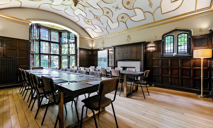 Previously Bournemouth’s most historic hotel, the immaculate Tudor Grange mansion boasts 12 bedrooms and 12 bathrooms on a sprawling estate set in secluded gardens on Bournemouth’s east cliff, making it ideal for large groups, weddings, and corporate events. With ornate ceilings, oak paneling, and large fireplaces throughout, it was immaculately designed in an authentic Tudor style.
