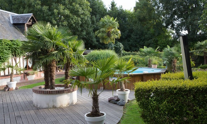 (Text automatically translated) ideally located, very quiet, very comfortable with a heated outdoor pool with a wooden terrace. Tastefully decorated, fully renovated in an exotic, near the famous beaches of Normandy. You will feel at home. Come see our personal website you will find more photos, rates and available dates throughout the year!