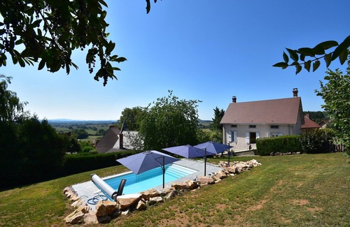 Enjoy fresh croissants and baguettes on the terrace under the trees. This mansion was once part of the Château de Martigny. The house has a typical French atmosphere and is ideal for 2 families. It is located among the hills in the quiet village of Martigny le Comte. The swimming pool with roller shutter and swimming ladder (9 m x 4 m, 1.5 m deep) is open when the weather permits. In cold years, the pool may take a little longer to open.