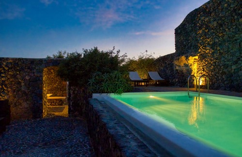 There is also a recently added extravagant infinity swimming pool and sun deck, made entirely by volcanic rock, where the guests can relax in a beautiful scenery, which is illuminated in a dramatic way during night-time, offering an unforgettable experience.