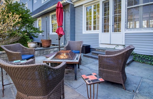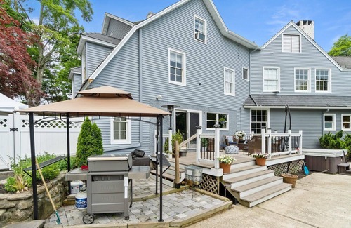 Situated in the heart of West Point, NY, and on the shore of Storm King Mountain, this stunning mansion is the perfect vacation spot for your next family getaway. With multiple lounge areas and hardwood floors throughout, you'll experience a chic space that feels like a home away from home. The hot tub and firepit make it easy to unwind after a long day of sightseeing or hiking. You'll find blazing-fast WIFI throughout the property and pet-friendly accommodations so you can bring your furry friends along with you! This is the perfect place to relax and recharge during your fall hideaway in New York City.