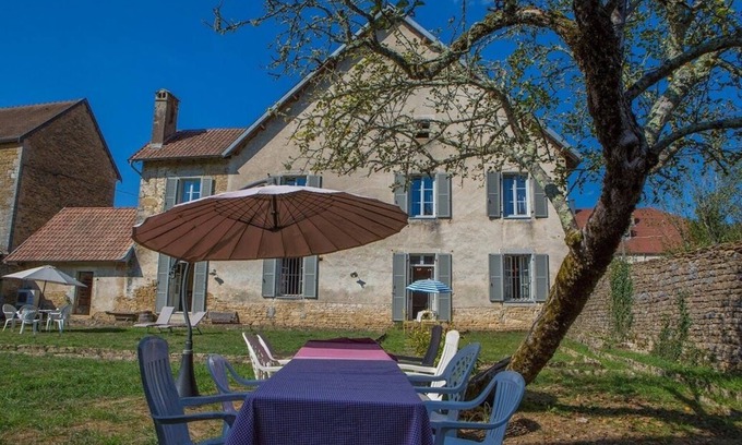 (Text automatically translated) weekend night and 2 nights 300 e 350 e, Nice 18th century presbytery renovated, in a quiet village and pitorresque the Loue valley 6km from the cited Courbet with houses on the Loue of Fame and Museum World. This house has retained its authenticity with a stone staircase, woodwork in all the rooms, whitewashed walls, stone fireplaces while providing the comfort and amenities of a modern home. On the ground floor, direct access from the kitchen and the large living room of 42m2, on 10 acres of private garden facing south with views of the Loue and environants castles, contact: June 75 Jan. 22 10 or 03 81 57 16 31