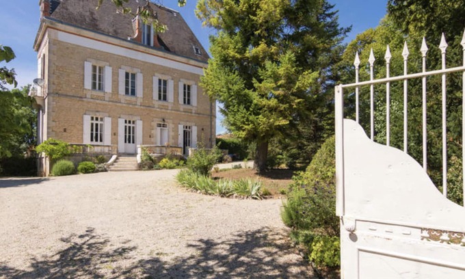Mansion with large garden and swimming pool is located in Brouchaud. Mansion with large garden and swimming pool provides accommodation, featuring Laundry, Pool, Private Pool, among other amenities. This House features Laundry, Pool, Private Pool, to make your stay a comfortable one.