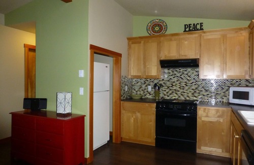 Unique offering designed for "TWO". COZY, spacious OPEN STUDIO layout with vaulted ceilings, electric fireplace, lots of windows, high-end bed with luxurious bedding, full kitchen, dining and living area, full bath with tub & shower. Amenities include smart 42" TV with NETFLIX provided, surround-sound Wifi sound bar to connect your MP3, phone or computer, fully furnished kitchen, quality bedding & towels and many more touches to make your visit memorable and comfortable.