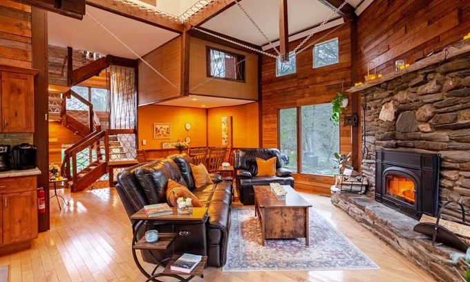 Maple Castle – Cozy Riverside Retreat with Hot Tub, Trails & Fireplace is located in Hancock. Maple Castle – Cozy Riverside Retreat with Hot Tub, Trails & Fireplace provides accommodation, featuring Air Conditioner, Security/Safety, Fireplace/Heating, among other amenities. This House features Air Conditioner, Security/Safety, Fireplace/Heating, to make your stay a comfortable one.