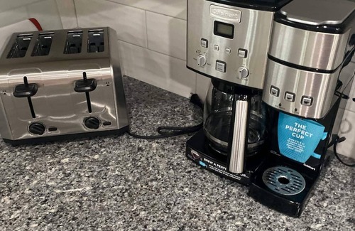 The house is loaded with all kitchen amenities. There is a Ninja 5 in 1 cooker that works great on bacon, steak, burgers, etc. We also have a pressure cooker above the refrigerator.