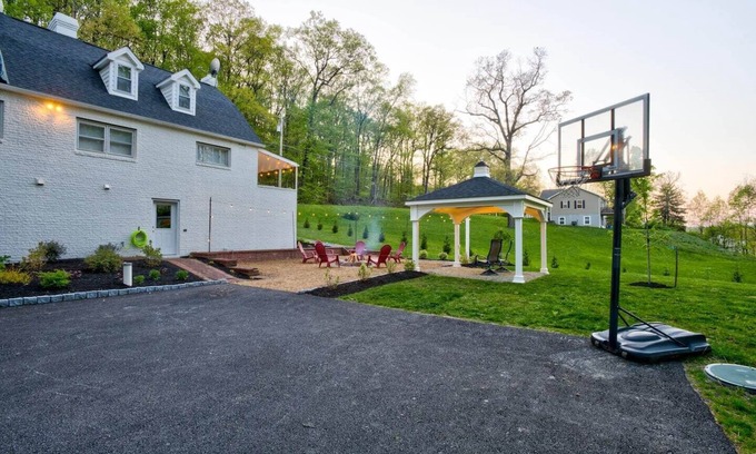 Escape to the Maple Grove Guesthouse, a beautiful 4-bedroom home located in the peaceful rolling hills of Mohnton. Perfect for families looking for a relaxing getaway, this spacious home has everything you need to enjoy your vacation. Tap into your competitive side by playing pickle ball with the family on our new driveway pickle ball court - paddles & balls provided!