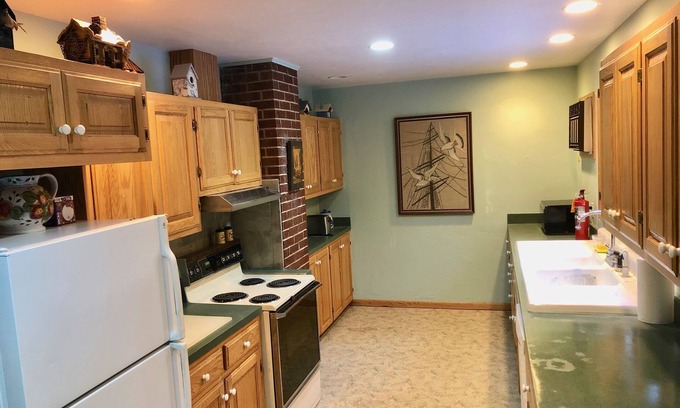 This house belonged to the owners of the Maple Grove Motel. It is completely furnished, Bath 1 - Wheel chair access with roll in shower, Full Bath 2 - Shower & Jacuzzi ! Also has Large Kitchen, Elec. stove, Microwave and Full size Refrigerator. Wifi, Hight Def Roku TV, Hydronic Heat, Dumpster, Snow Plowed Drive in winter and immediate access to The Top O Thumb Snowmobile Trails and XX Ski !