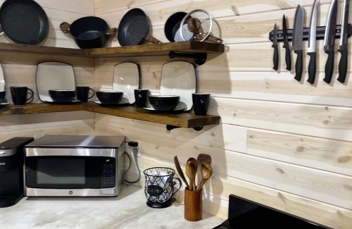 Inside, you’ll find a spacious living room with two futons, a big-screen Smart TV (Netflix, Roku, and more), and high-speed Wi-Fi for work or play. The full kitchen is stocked with essentials and a full-size refrigerator, alongside a tiled shower and a brand-new luxury queen mattress for a restful night’s sleep. Heating, A/C, linens, pillows, and towels are all included to make your stay worry-free.