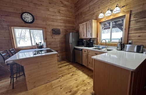 Our cabin offers a warm and rustic ambiance, inviting you to unwind in a well-appointed living space. Cozy furnishings, an electric fireplace, and a fully equipped kitchen ensure a comfortable and enjoyable stay.
