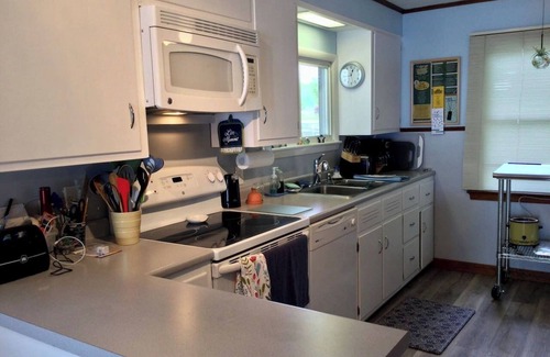 Take it easy at this unique and tranquil getaway. Tucked away from the road, this lakefront home is a charm. Two private bedrooms, two baths, a dedicated room with desk just to get some work done, and all the other comforts you need. Fabulous Westerly views, air conditioned living room area, nice clean water with a dock, plenty of room to relax and just chill. Bring your kayaks and canoes, floaty toys, what have you, you’re all set for Summer fun! And if you need more room, we offer this and our 2 bedroom apt on another listing
