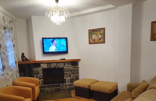 It consists of 1 double room, 1 room with 2 beds, bathroom with bathtub, kitchen - dining room with TV and closed fireplace. Ceramic hob, microwave, fridge and washing machine.