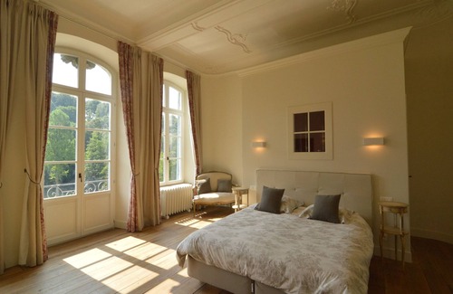 Set in the tranquil countryside of Marchin, this 13-bedroom castle offers a majestic escape for up to 36 guests. Surrounded by forest and historic charm, the estate features a pond, infrared sauna, fitness room, and playroom, perfect for large families or group gatherings.