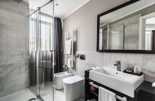 Marconi Hotel offers 40 accommodations with minibars and safes. Beds feature premium bedding. 32-inch flat-screen televisions come with cable channels and pay movies. Rooms have partially open bathrooms. Bathrooms include showers, bidets, and hair dryers.