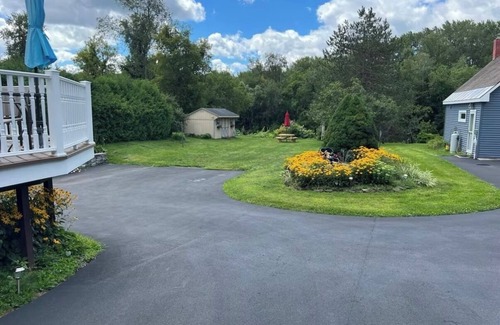 The whole first floor is totally available to guests. Beautiful private backyard overlooking Erie Canal with deck and dock. This outside area could possibly be shared with the upstairs guest. This first floor unit has 4 seperate bedrooms. #1 new King bed with dressers and walk in closet. #2 is a new Full bed with closet and dresser. #3 Is a smaller bedroom with Twin bed, dresser & door to the outside deck. All 3 are in the back of home with Canal views. #4 is off the living room with twin bed & overstuffed lounge chair. There is a dining room that seats 6+ and the kitchen table seats 4+ both have table leafs to make larger. There is a Full shower bath in the basement that "possibly" could be opened up with special arrangements with the host before booking. Otherwise basement is locked off to guests. The only stairs are the front steps to get into the house.