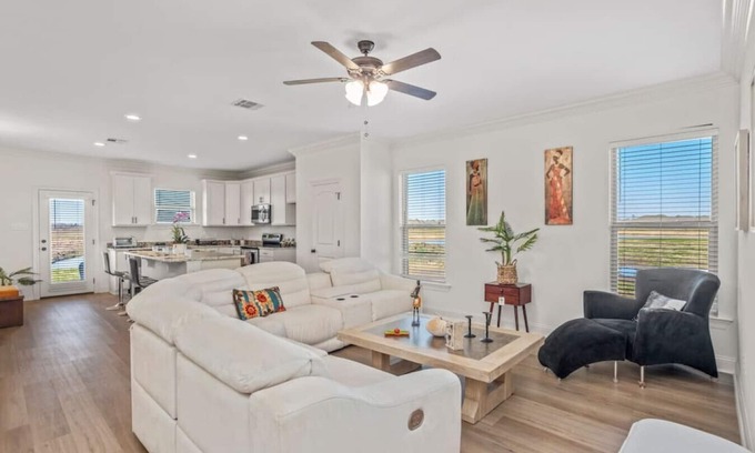 Escape to this beautifully decorated 4-bedroom, 2.5-bath country retreat located in East Lake Charles, where comfort meets charm and the sweet life begins the moment you arrive. Nestled in a peaceful setting with room to sleep up to 12 guests, this home is perfect for families or groups of friends looking for something special.