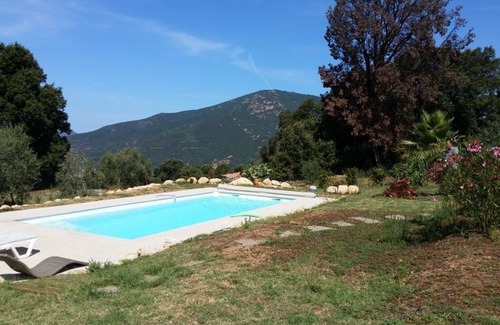 Cocoonr/Book&Pay offers this beautiful 120 m² house with private pool and mountain views, set in 2,800 m² of garden, for rent in Cauro. It can accommodate 6 travellers, adults only, as the house and its surroundings are not suitable for children. There is a 50 m² living room, a fully equipped kitchen, three bedrooms and two shower rooms. Wifi, bed linen and towels included - we're waiting for you!